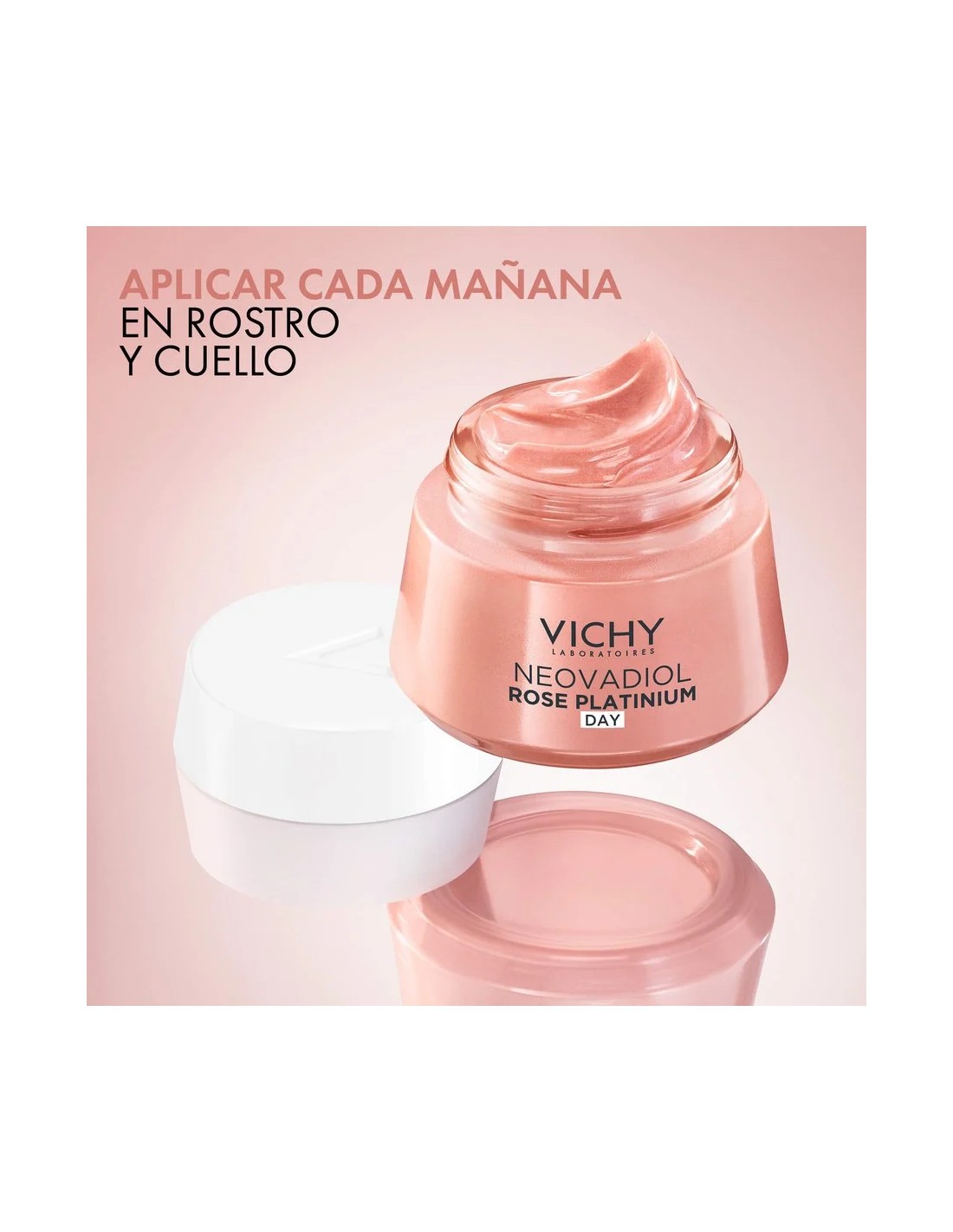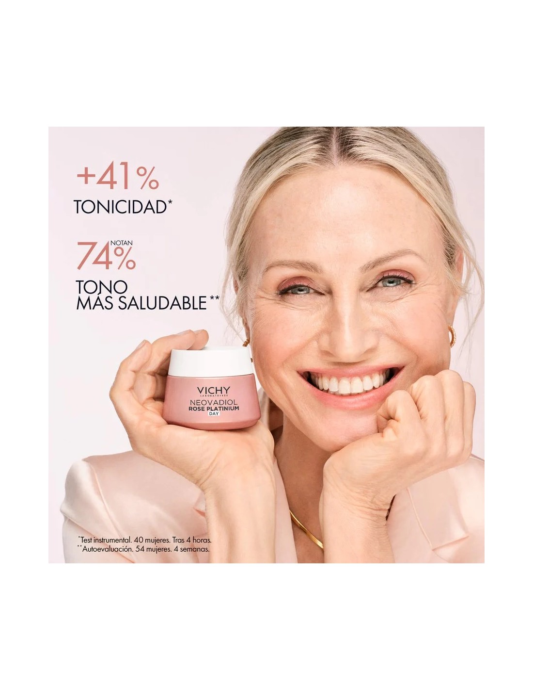 NEOVADIOL Rose Platinium es una crema de día diseñada para pieles maduras (especialmente a partir de la menopausia), cuando la piel tiende a volverse más fina, frágil y apagada.