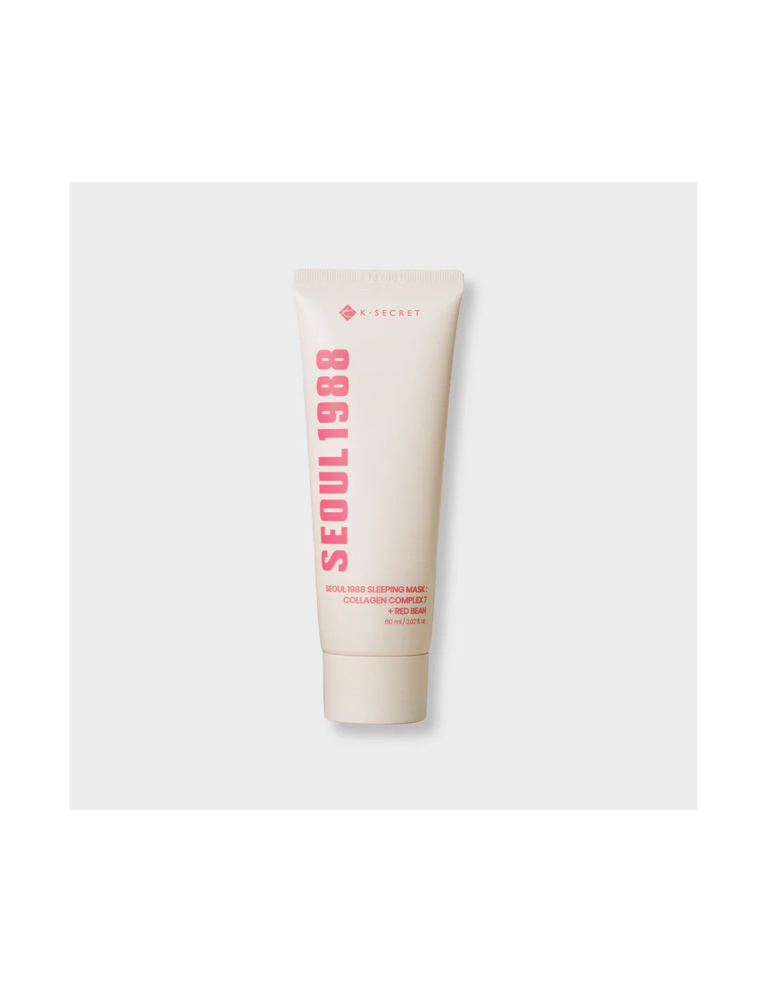 SEOUL 1988 Sleeping Mask: Collagen Complex 7 + Red Bean es una mascarilla nocturna de textura gel ligera diseñada para actuar mientras duermes. Su fórmula combina siete tipos de colágeno, cápsulas de vitamina E y extracto de frijol rojo de Haenam para mejorar la firmeza, reforzar la barrera cutánea e hidratar intensamente sin sensación grasa.